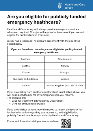 Charges for Visitors: Visitors to Jersey will now be charged for emergency healthcare services unless their home country has a Reciprocal Health Agreement with Jersey.